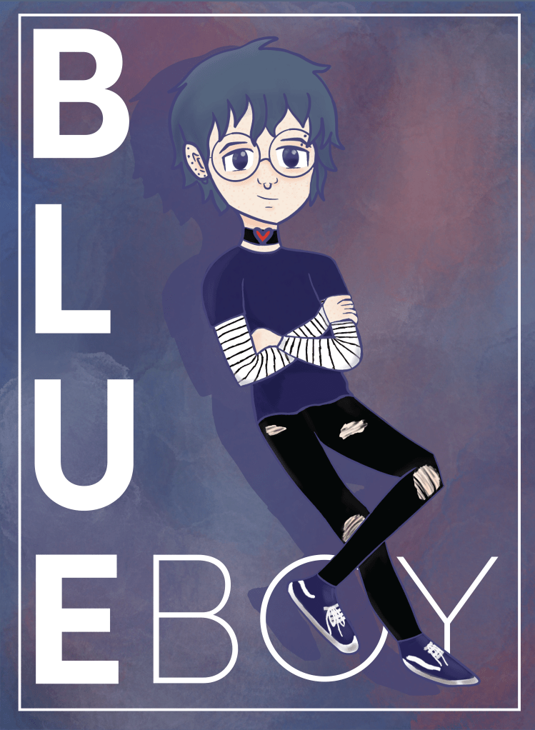 Blue Boy is my own creation. He is a character that I truly love that I had created years ago and I have been drawing him in my art style as it progresses over the years. I wanted the poster to be personal to me and also have some sort of aesthetic to it. Blue was the star of his own poster and that was my goal from when I started this.