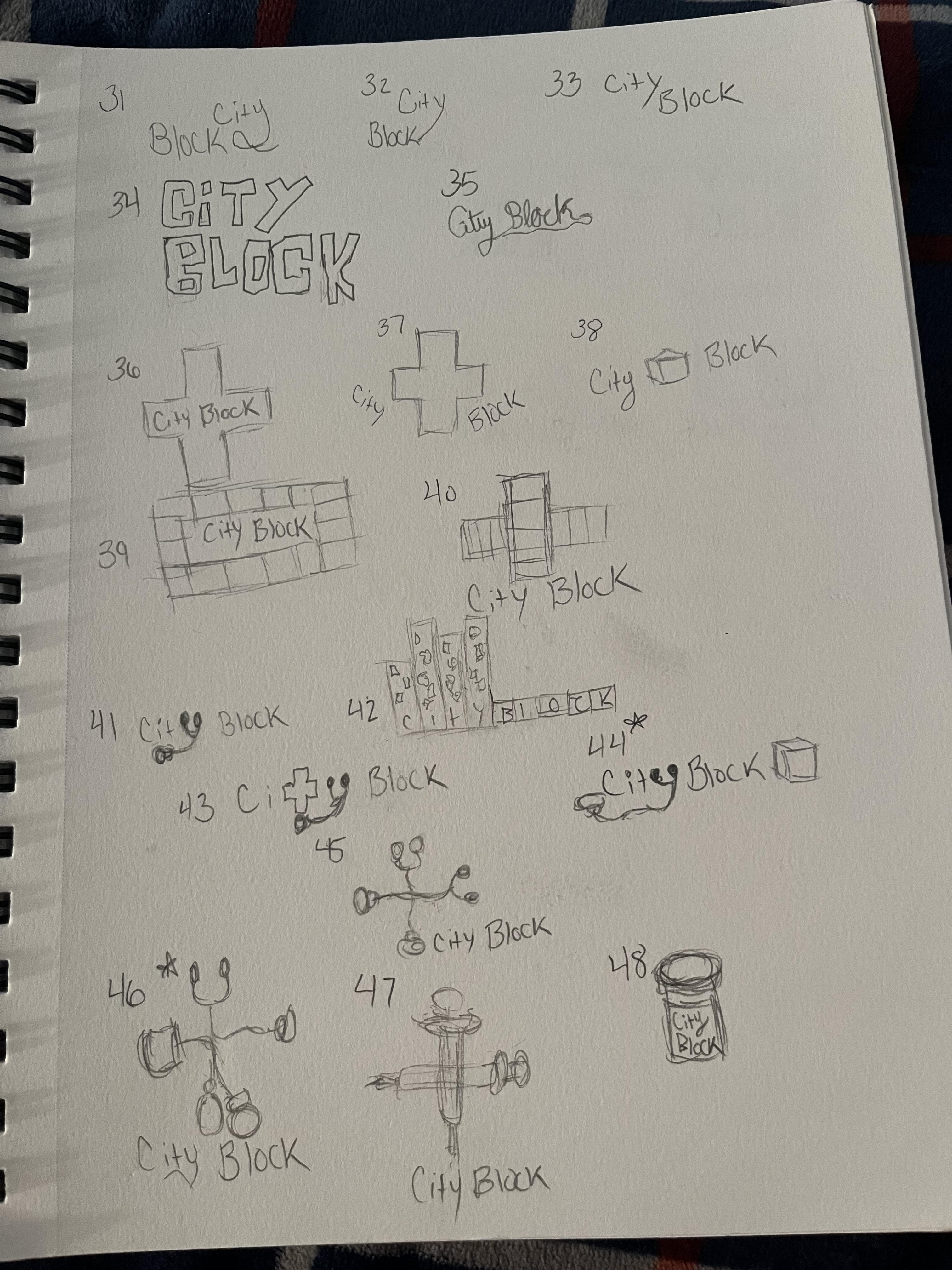My sketches were three full pages of all sorts of possibilities. If felt important to explore any and all options and I had a lot of ideas that I was working through before choosing 3 to make vectors of and of course the final logo.