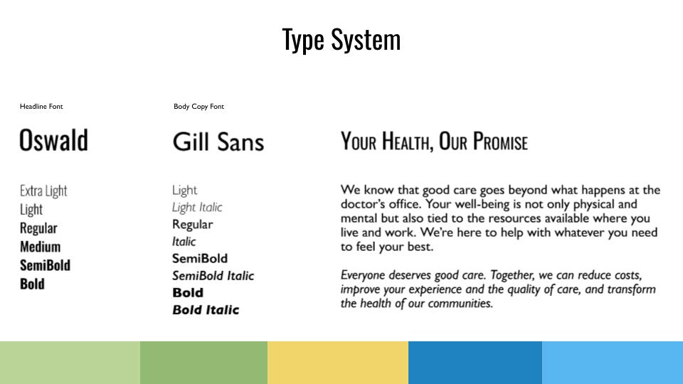 Our next step in our branding was our type system. We went with two san serif fonts as we found that they not only worked together but felt it worked really well with the brand we were working to create.
