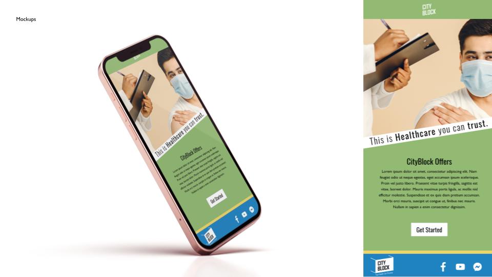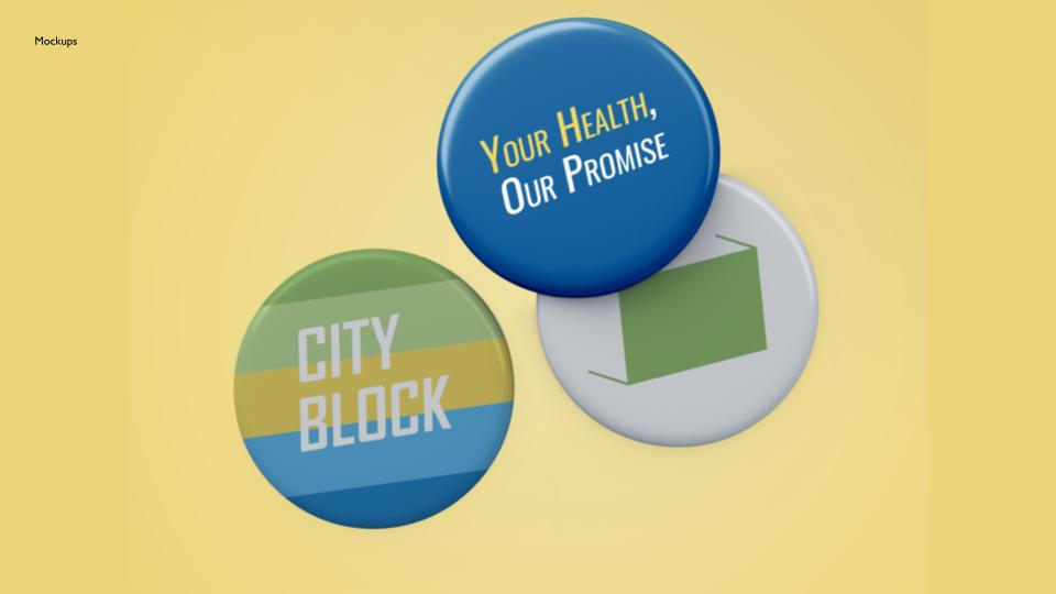 I also worked to create the City Block pins. I thought it was a fun way to advertise the health care as a whole. The pins work to show different aspects of the brand using the type and color choices that we used for the brand itself.