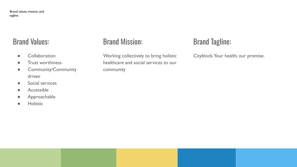 The second part of our mood board we started exploring imagery and other health care brands to figure out what type of direction we wanted to go with City Block. We were also trying to keep in mind those brand values while exploring and mood boarding things.