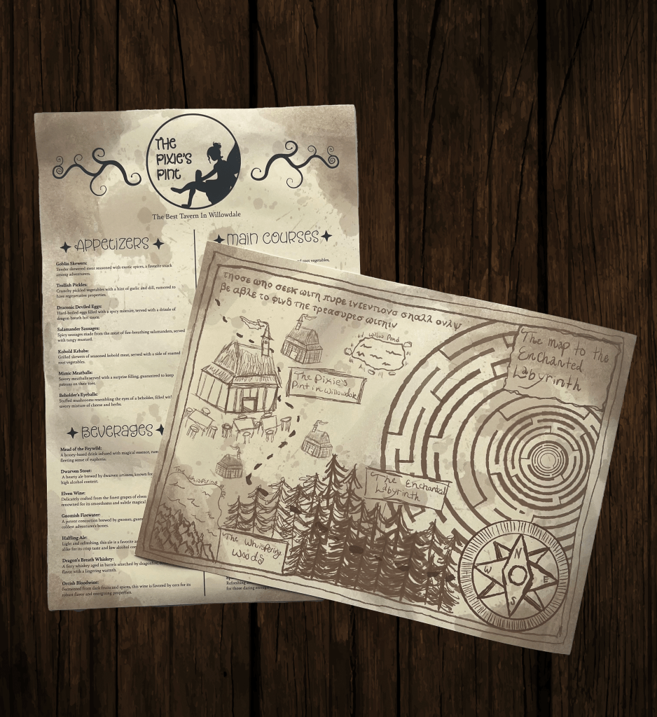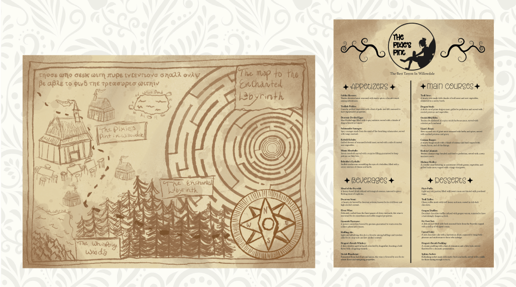 For my other two props we have the map and I created a menu for the tavern as well trying to give more to what the atmosphere would be like.