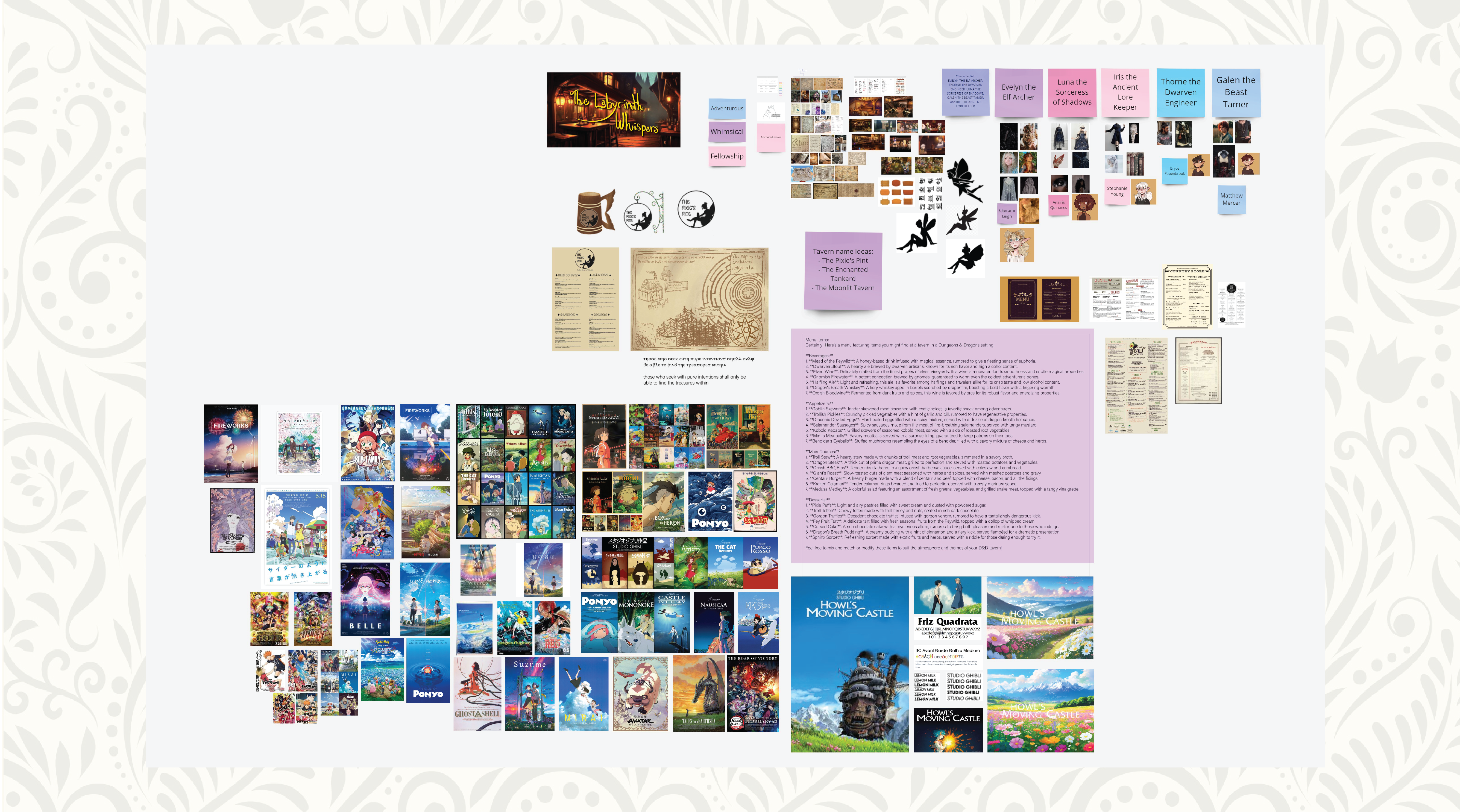 After being given my script I started moodboarding. Taking inspiratin from animated and anime movies along with the game Dungeons and Dragons when creating everything for my movie.