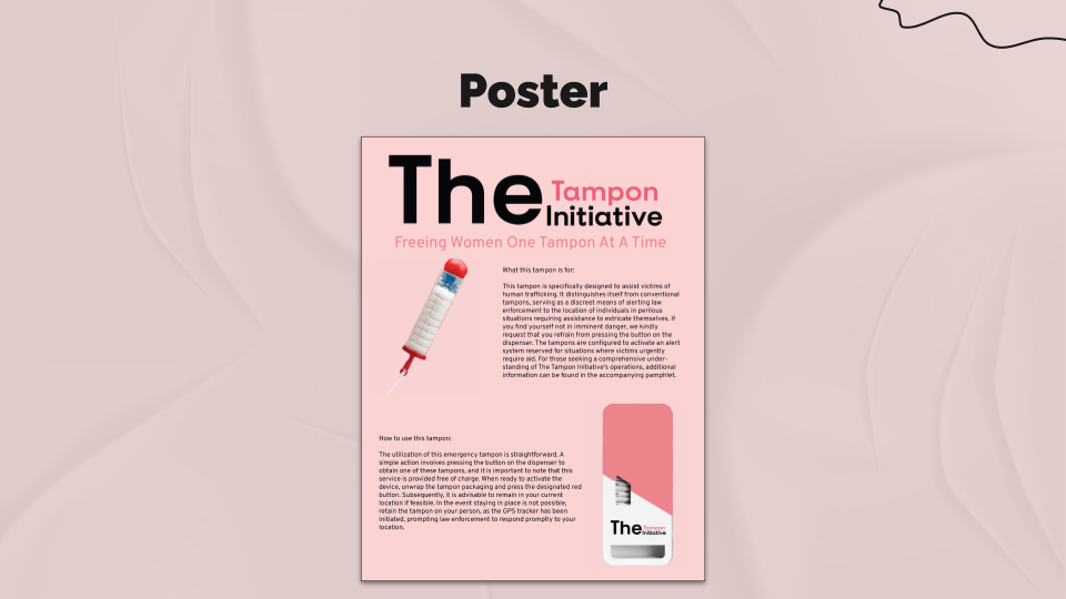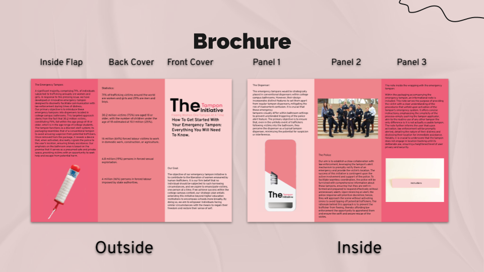 The brochure is a way for people who have the time to read about the emergency tampon and what it does along with learning about the initiative itself. It is supposed to be more in depth compared to the poster.