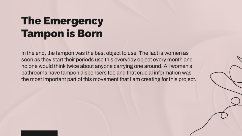 After going through several ideas I finally chose the tampon as the secret device that one would be able to use to contact the police and not be figured out by their captor.